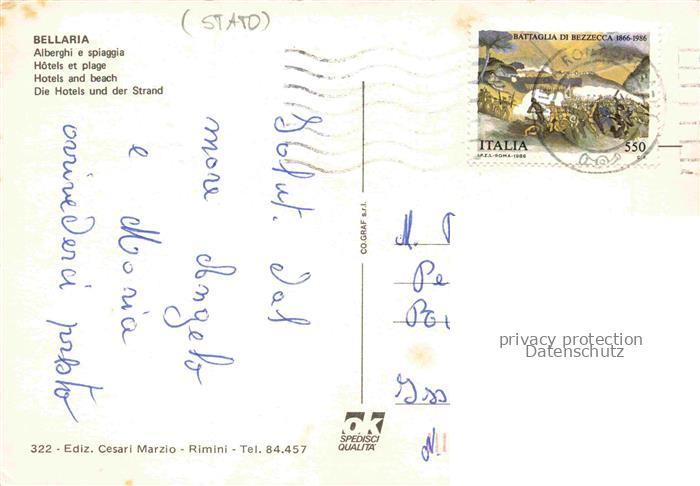 74028541 old postcard Bellaria Rimini IT Alberghi e spiaggia postalisch gelaufen Erhaltung siehe scans [FriedD77] KatCode: 11240
