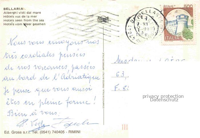 74029122 old postcard Bellaria Rimini IT Alberghi visti dal mare postalisch gelaufen Erhaltung siehe scans [FriedD77] KatCode: 11240