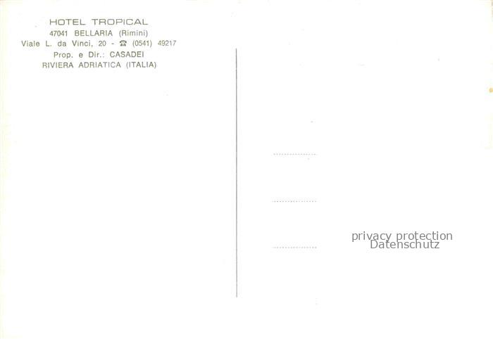 74137497 Bellaria Rimini IT Hotel Tropical postalisch nicht gelaufen Erhaltung siehe scans [WerneD78] KatCode: 11240