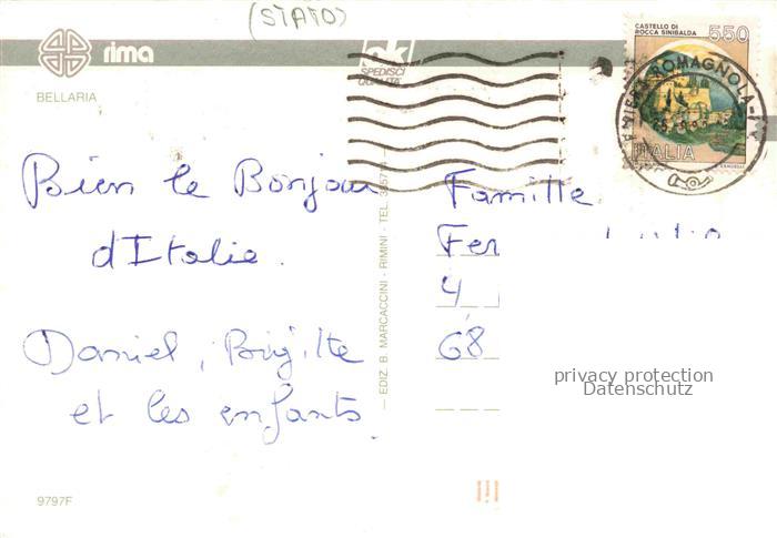 74028746 old postcard Bellaria Rimini IT Panoama Strand postalisch gelaufen Erhaltung siehe scans [FriedD77] KatCode: 11240