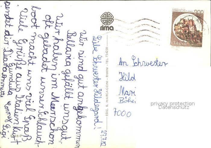 old postcard Bellaria Strand Hotels postalisch gelaufen Erhaltung siehe scans
