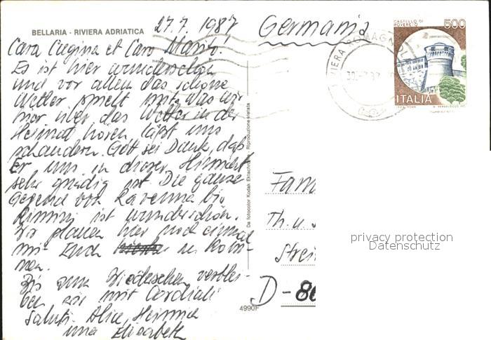 old postcard Bellaria Strand Surfer Sonnenuntergang postalisch gelaufen Erhaltung siehe scans