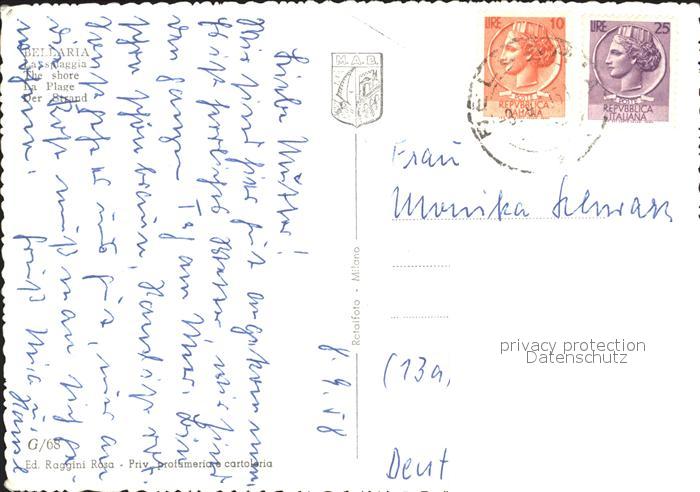 alte Postkarte Bellaria Strandpartie postalisch gelaufen Erhaltung siehe scans