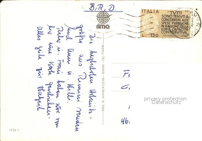 old postcard Bellariva di Rimini Panorama Strand Leuchtfontaene Strassenpartie postalisch gelaufen Erhaltung siehe scans