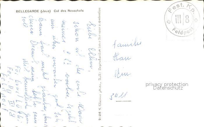 11736443 alte Postkarte Bellegarde Jaun Col des Neuschels postalisch gelaufen Feldpost Erhaltung siehe scans KatCode: 11470070265162