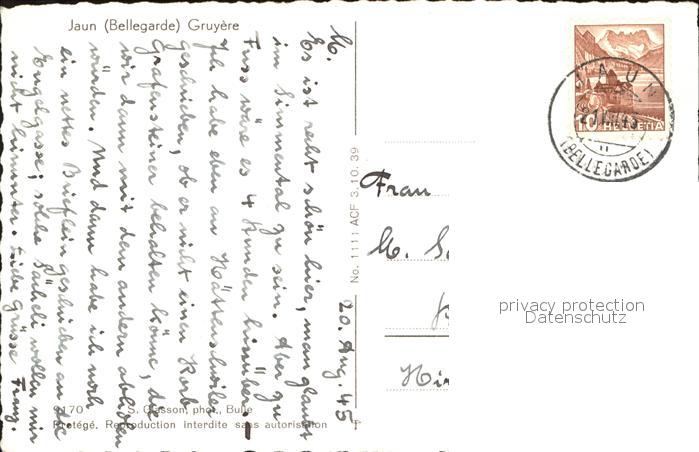 11853551 alte Postkarte Bellegarde Jaun Vue generale postalisch gelaufen Erhaltung siehe scans KatCode: 11470070265162