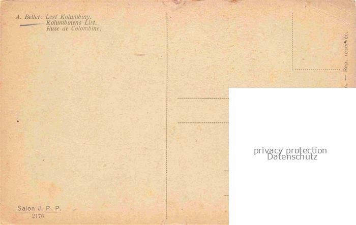 74084889 BELLET A. Kuenstlerkarte Lest Kolumbiny Salon J.P.P. Nr. 2176 postalisch nicht gelaufen Erhaltung siehe scans [IrynaD87] KatCode: 22240000003200