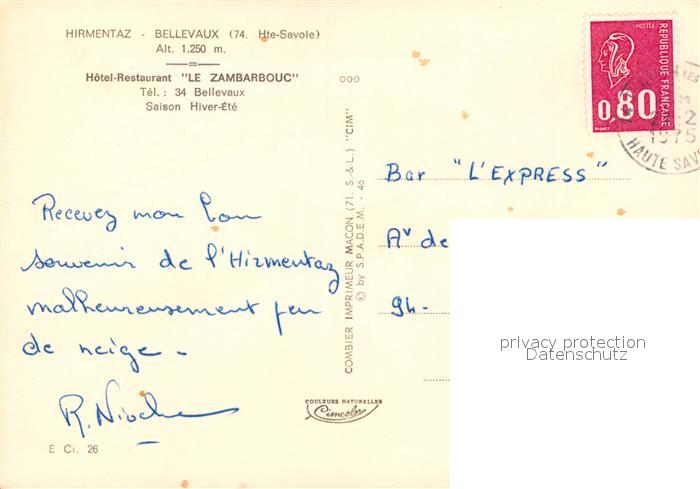 13582601 Bellevaux Haute-Savoie Hotel Restaurant Le Zambarbouc KatCode 11170074474032
