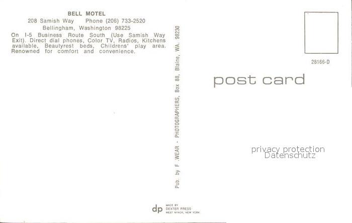 71859382 Bellingham Washington Bell Motel postalisch nicht gelaufen Erhaltung siehe scans KatCode: 14140500000000