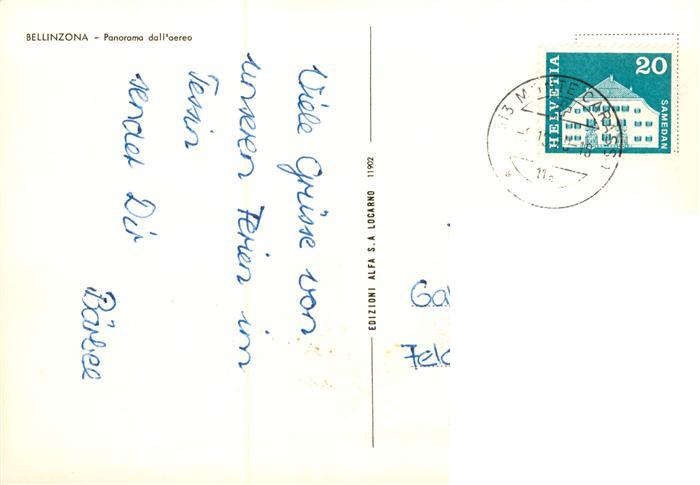 13886572 alte Postkarte Bellinzona TI Fliegeraufnahme postalisch gelaufen Erhaltung siehe scans [WerneD78] KatCode: 11470210640764