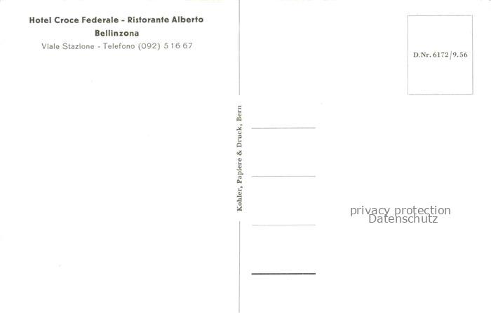 34144603 BELLINZONA TI Hotel Croce Federale Ristorante Alberto postalisch nicht gelaufen Erhaltung siehe scans [FriedD77] KatCode: 11470210640764