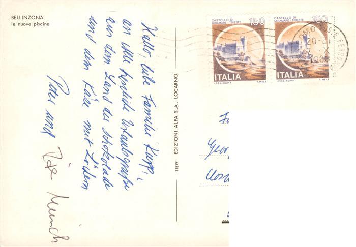 13869649 alte Postkarte Bellinzona TI Le nuove piscine veduta aerea postalisch gelaufen Fliegeraufnahme Erhaltung siehe scans [FriedD77] KatCode: 11470210640764