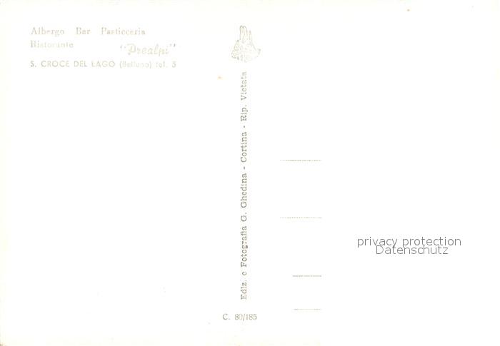 73729537 Belluno Albergo Bar Pasticceria Ristorante Prealpi postalisch nicht gelaufen Erhaltung siehe scans [WerneD78] Wern Katcode 11240