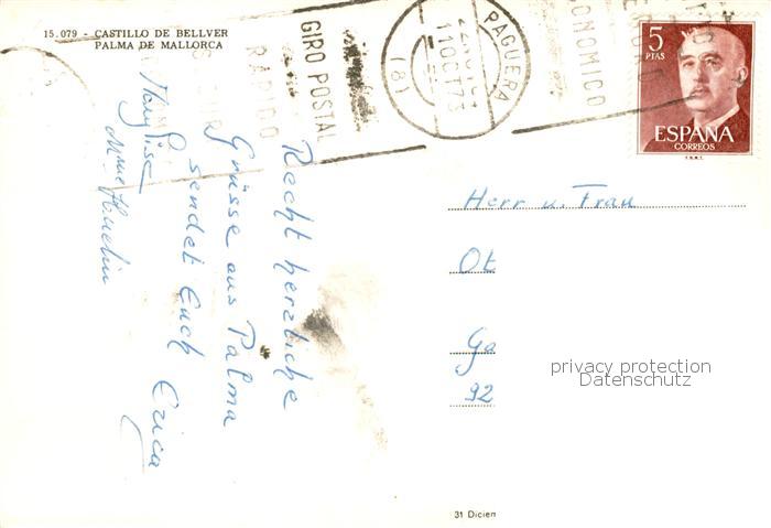 old postcard Bellver Castillo de Bellver Fliegeraufnahme postalisch gelaufen Erhaltung siehe scans [WerneD78]