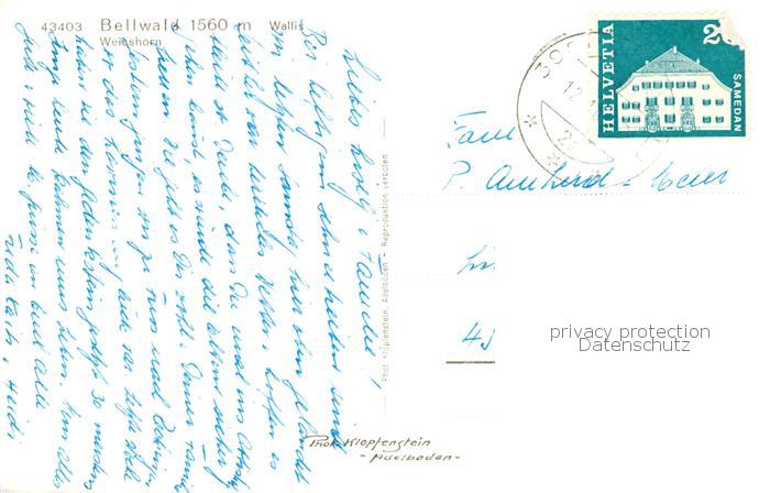 13822630 alte Postkarte Bellwald VS mit Weisshorn postalisch gelaufen Erhaltung siehe scans [FriedD77] KatCode: 11470230705402