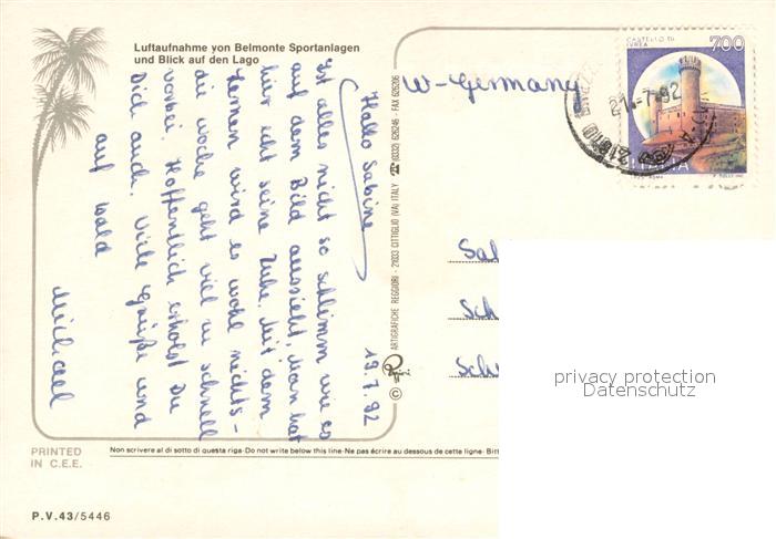 old postcard Belmonte Mezzagno Fliegeraufnahme Hotel u. Sportanlagen m. Lago postalisch gelaufen Erhaltung siehe scans [LiesaD40]