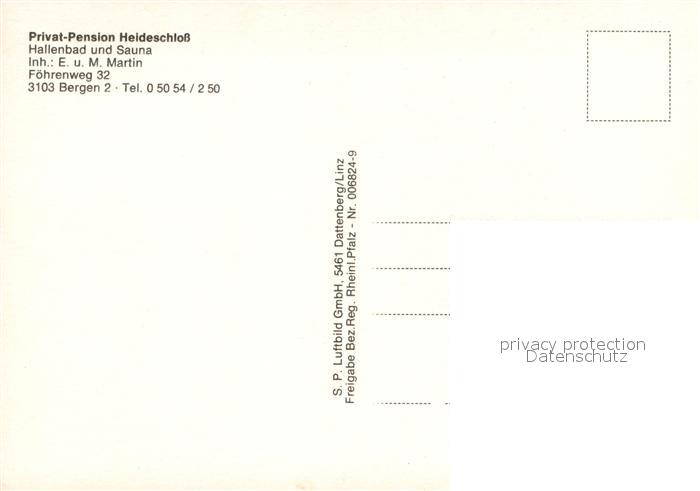 73746022 Belsen Bergen Privat Pension Heideschloss postalisch nicht gelaufen Erhaltung siehe scans [WerneD78] KatCode: 11110003351004