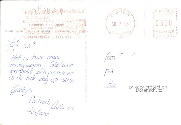 12035595 carte postale Belves Dordogne Haute de Ratebout Swimmingpools Vue aerienne postalisch gelaufen Erhaltung siehe scans KatCode: 11170024424035