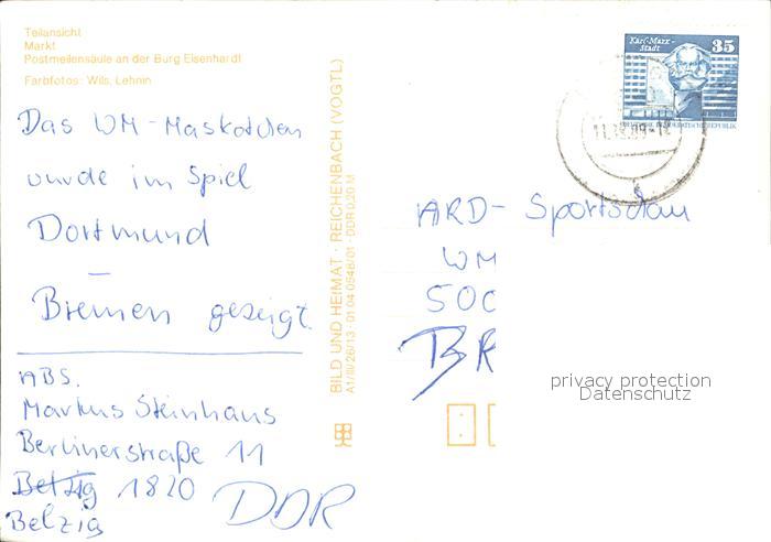 72415304 alte Postkarte Belzig Bad Markt Postmeilensaeule Burg Eisenhardt postalisch gelaufen Erhaltung siehe scans KatCode: 11110012069020