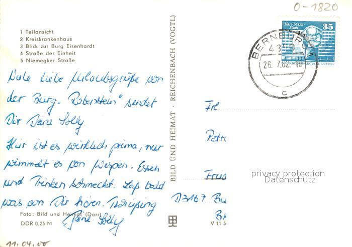 73043781 alte Postkarte Belzig Bad Panorama Kreiskrankenhaus Burg Eisenhardt Strasse der Einheit Niemegker Strasse postalisch gelaufen Erhaltung siehe scans [WerneD78] KatCode: 11110012069020