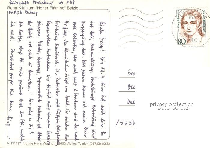73760117 alte Postkarte Belzig Bad Reha Klinikum Hoher Flaeming Rezeption Zimmer Fitnessraum Speisesaal Hallenbad Spielzimmer postalisch gelaufen Erhaltung siehe scans [WerneD78] KatCode: 11110012069020