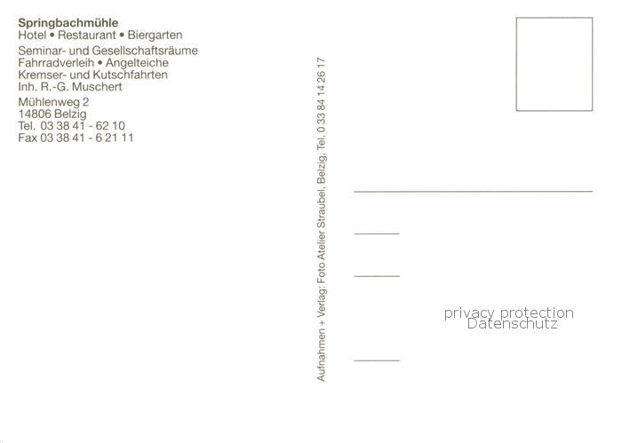 73858731 alte Postkarte Belzig Bad Springbach Muehle Hotel Restaurant Biergarten Belzig postalisch gelaufen Erhaltung siehe scans [WerneD78] KatCode: 11110012069020