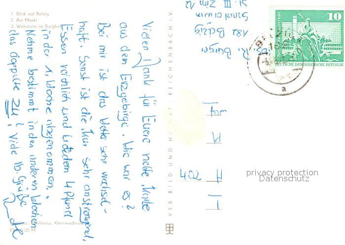 73046717 alte Postkarte Belzig Bad Stadtblick Markt Wehrturm im Burghof postalisch gelaufen Erhaltung siehe scans [FriedD77] KatCode: 11110012069020