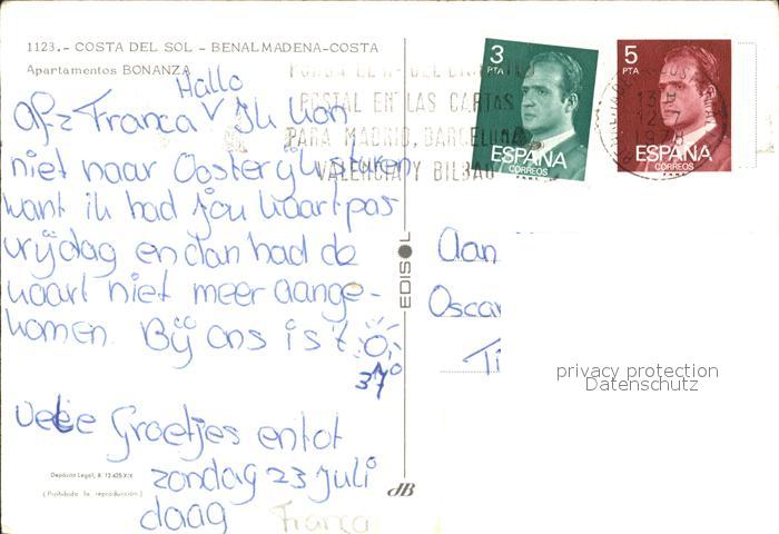 old postcard Benalmadena Costa Apartamentos Bonanza postalisch gelaufen Erhaltung siehe scans