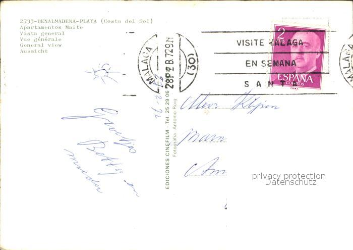 old postcard Benalmadena Costa Apartamentos Maite postalisch gelaufen Erhaltung siehe scans