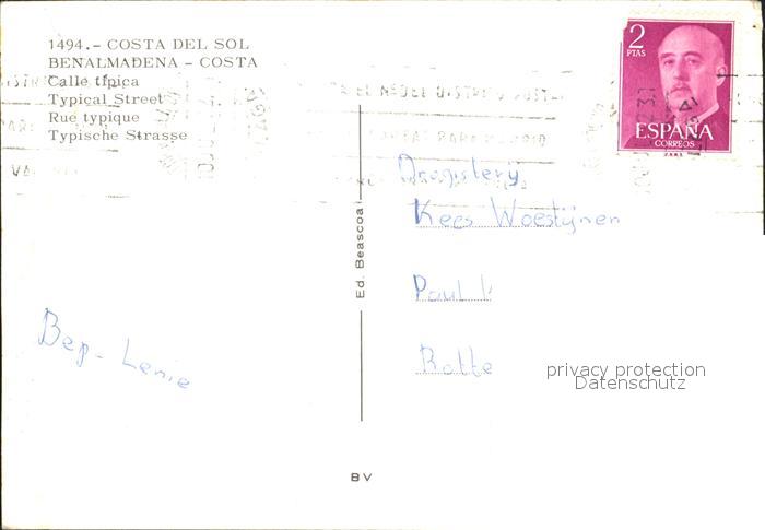 old postcard Benalmadena Costa Calle tipica postalisch gelaufen Erhaltung siehe scans