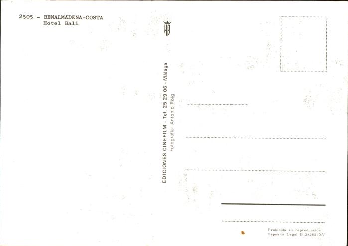 Benalmadena Costa Hotel Bali Piscina Restaurante postalisch nicht gelaufen Erhaltung siehe scans