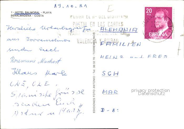 old postcard Benalmadena Costa Hotel Bamoral postalisch gelaufen Erhaltung siehe scans [LiesaD40 kt120box]