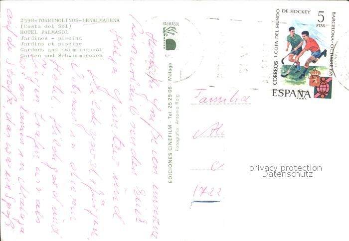 old postcard Benalmadena Costa Hotel Palmasol postalisch gelaufen Erhaltung siehe scans [LiesaD40 kt120box]