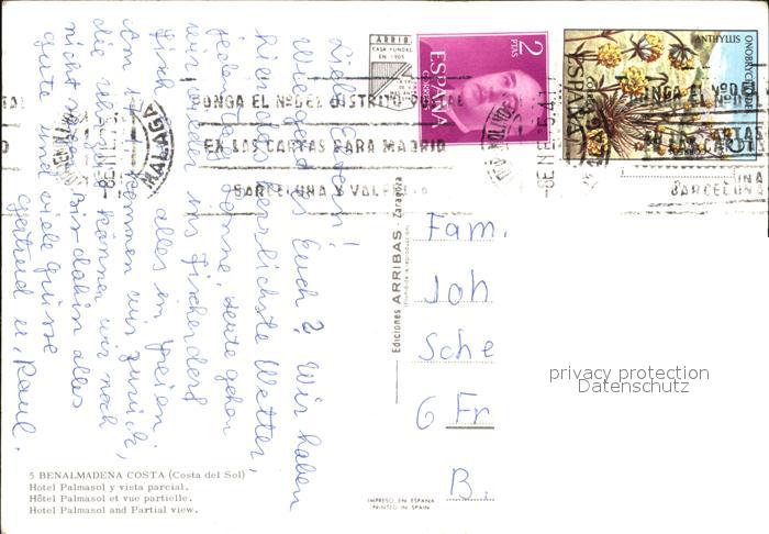 old postcard Benalmadena Costa Hotel Palmasol Pool postalisch gelaufen Erhaltung siehe scans [AndreD76]