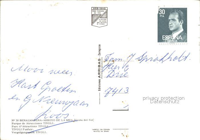 old postcard Benalmadena Costa Park Tivoli postalisch gelaufen Erhaltung siehe scans