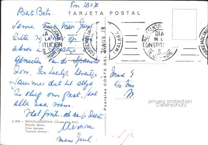 old postcard Benalmadena Costa Strassenpartie postalisch gelaufen Erhaltung siehe scans