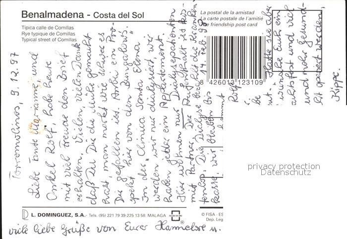 Benalmadena Costa Tipica calle de Comillas Esel Lasttier postalisch nicht gelaufen Erhaltung siehe scans