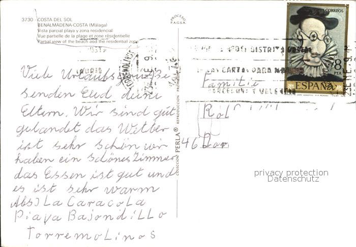 old postcard Benalmadena Costa Vista parcial playa y zona residencial postalisch gelaufen Erhaltung siehe scans