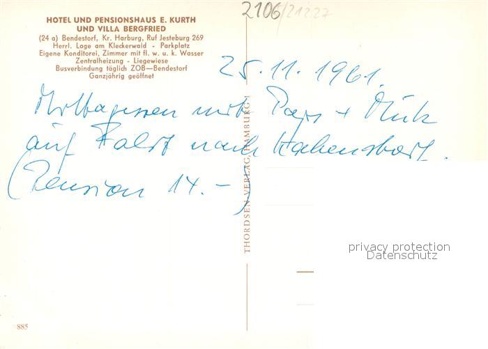 73711383 Bendestorf Hotel und Pensionshaus e Kurth und Villa Bergfried Aussenansicht postalisch nicht gelaufen Erhaltung siehe scans [LiesaD40] KatCode: 11110003353003