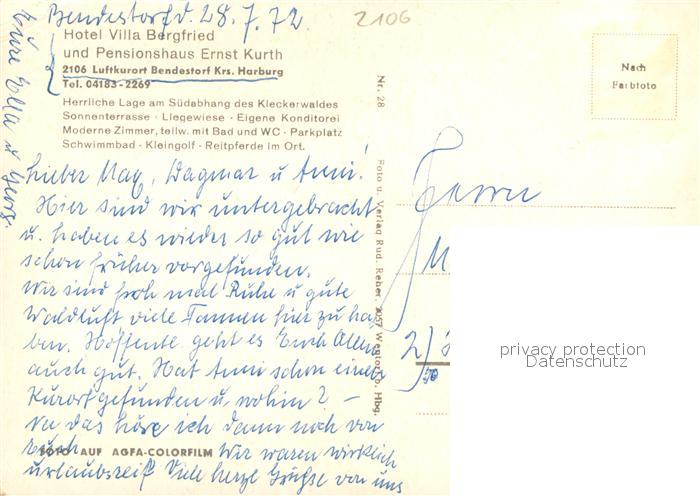 73714167 Bendestorf Hotel Villa Bergfried und Pensionshaus Ernst Kuth Gaststube Garten postalisch nicht gelaufen Erhaltung siehe scans [WerneD78] KatCode: 11110003353003