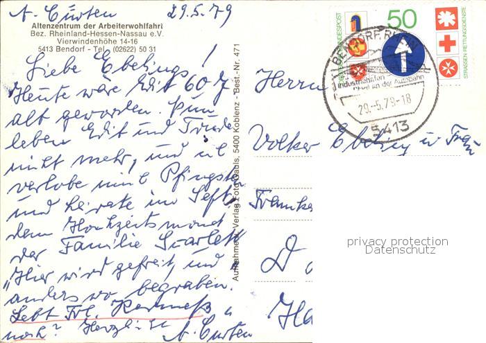 72456269 alte Postkarte Bendorf Rhein Altenzentrum AWO postalisch gelaufen Erhaltung siehe scans KatCode: 11110007137203