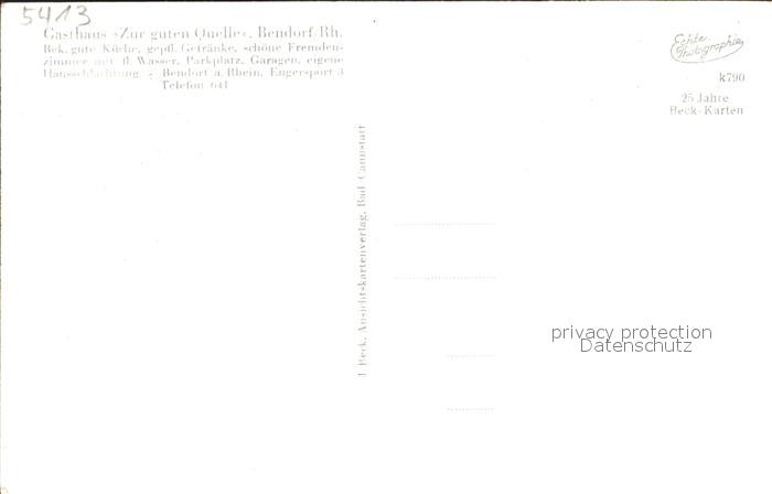 31720609 Bendorf Rhein Gasthaus zur guten Quelle postalisch nicht gelaufen Erhaltung siehe scans KatCode: 11110007137203