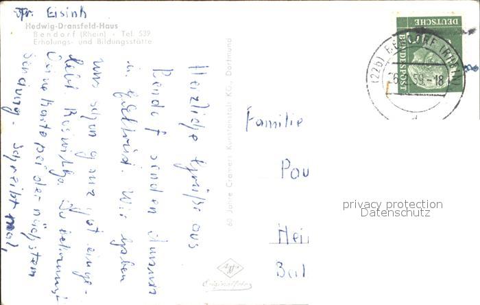 72043260 alte Postkarte Bendorf Rhein Hedwig-Dransfeld-Haus postalisch gelaufen Erhaltung siehe scans KatCode: 11110007137203