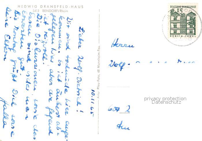 73098521 alte Postkarte Bendorf Rhein Hedwig Dransfeld Haus postalisch gelaufen Erhaltung siehe scans [KathaD81] KatCode: 11110007137203