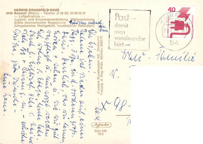73880617 Bendorf Rhein Hedwig Dransfeld Haus Fliegeraufnahme postalisch nicht gelaufen Erhaltung siehe scans [WerneD78] KatCode: 11110007137203