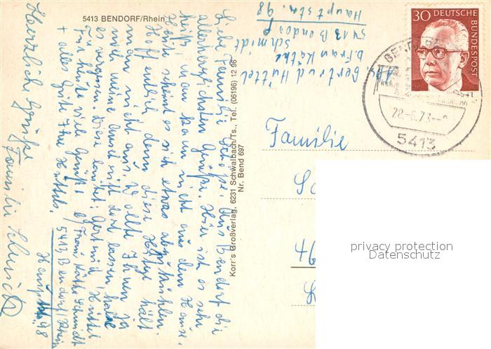 73663333 alte Postkarte Bendorf Rhein Park Panorama Kranken und Schwesternhaus Schwimmbad Schule Abtei postalisch gelaufen Erhaltung siehe scans [WerneD78] KatCode: 11110007137203