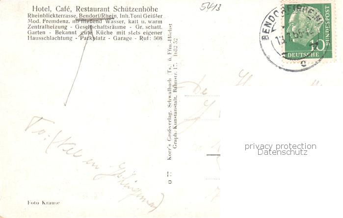 73790933 alte Postkarte Bendorf Rhein Restaurant-Hotel Cafe Schuetzenhoehe Aussen- u. Innenansichten postalisch gelaufen Erhaltung siehe scans [LiesaD40] KatCode: 11110007137203