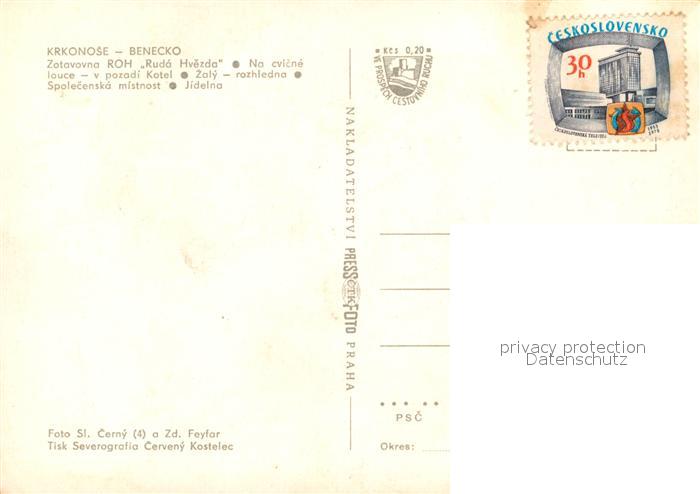 old postcard Benecko Semily Ruda Hvezda No cvicne louce v pozadi Kotel Spolecenska mistnost Jidelna postalisch gelaufen Erhaltung siehe scans [WerneD78]