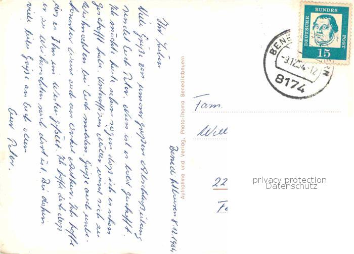 72821407 alte Postkarte Benediktbeuern Gesamtansicht mit Alpenpanorama Kirche Freibad Strassenpartie postalisch gelaufen Erhaltung siehe scans [FriedD77] KatCode: 11110009173113