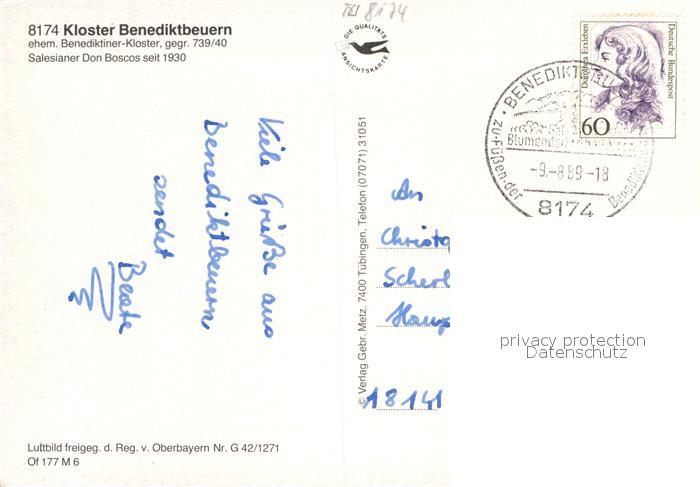 73010125 alte Postkarte Benediktbeuern Kloster Benediktbeuern Fliegeraufnahme postalisch gelaufen Erhaltung siehe scans [WerneD78] KatCode: 11110009173113